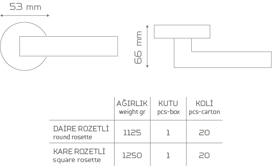 | Ağırlık | Daire Rozetli : 1125 gr, Kare Rozetli : 1250 gr |